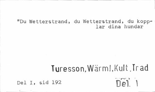 //// "Du Wetterstrand, du Wetterstrand, du kopplar dina hundar //// Turesson, Wärml.Kult .Trad //// Del I, sid 192 Del" ] ////