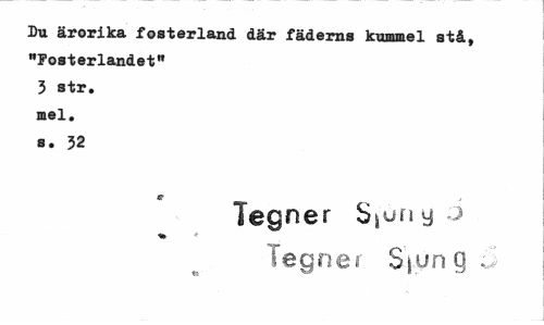 //// Du ärorika fosterland där fäderna kummel stå, "Fosterlandet" 3 str. mel. s. 32 //// st J //// Tegner S^uny^ //// » * //// Tegner Sjung , ////