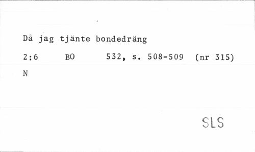 //// Dä jag tjänte bondedräng //// 2:6 BO 532, s. 508-509 (nr 315) //// N //// SLS ////