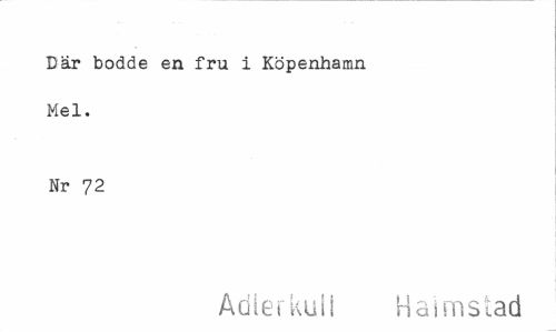 //// Där bodde en fru i Köpenhamn Mel. //// Nr 72 //// Adlerkuli Halmstad ////