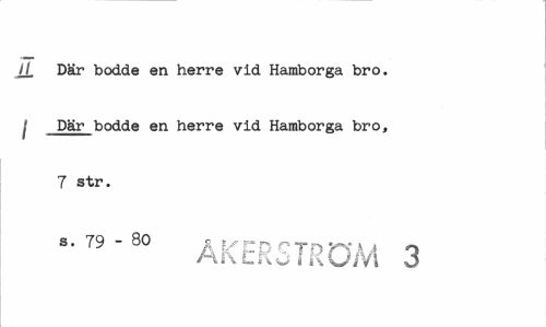 //// jj. Där bodde en herre vid Hamborga bro. / Där bodde en herre vid Hamborga bro, 7 str. //// s. 79 - 80 c ijr r n n T ^ v j //// M r\ L K O I K UM O ////