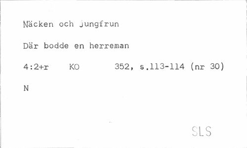 //// Nacken och jungfrun Där bodde en herreman //// 4:2+r KO 352, s.113-114 (nr 30) //// N //// SLS ////
