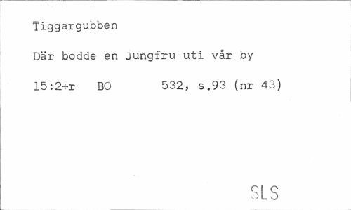//// Tiggargubben //// Där bodde en Jungfru uti vår by 15:2+r BO 532, s.93 (nr 43) //// SLS ////