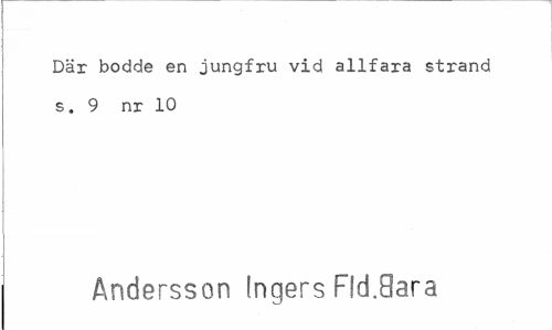 //// Där bodde en jungfru vid allfara strand s. 9 nr 10 //// Andersson Inqers Ffd.Sara ////