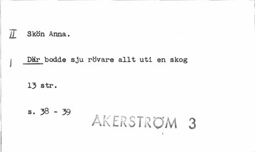 //// il Skön Anna. //// I _Där_bodde sju rövare allt uti en skog 13 str. s. 38 - 39 //// AkLKSJROM 3 ( ////