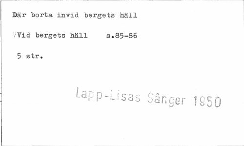 //// Där borta invid bergets häll "¦/Vid bergets häll s.85-86 5 str. //// lapp-Lisas Sånger WSO ////