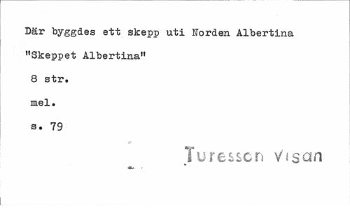 //// Där byggdes ett skepp uti Horden Albertina "Skeppet Albertina" 8 str. mel. s. 79 //// er //// Juressen visan ////