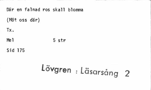 //// Där en falnad ros skall blomma //// (Möt oss där) //// Tx. //// Mel 5 str //// Sid 175 //// Lövgren : Läsarsång 2 ////