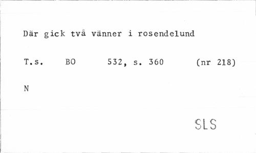//// Där gick tva vänner i rosendelund //// T.s. BO 532, s. 360 (nr 218) //// N //// SLS ////