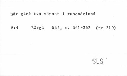 //// Där gick tvä vänner i rosendelund //// 9:4 BOrgå 532, s. 361-362 (nr 219) //// SLS " ////