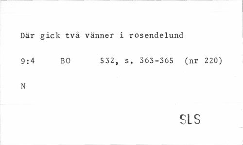 //// Där gick tvä vänner i rosendelund //// 9:4 BO 532, s. 363-365 (nr 220) //// N //// SLS ////