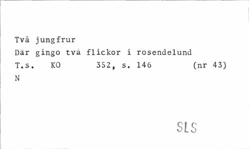 //// Tvä jungfrur //// Där gingo tva flickor i rosendelund //// T.s. KO 352, s. 146 (nr 43) //// N //// SLS ////