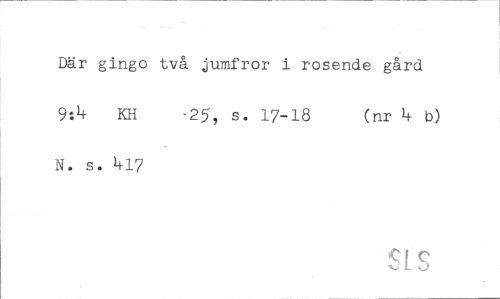 //// Där gingo två jumfror i rosende gård 9ib KH -25, s. 17-18 (nr k b) N. s. 1+17 //// SLS ////