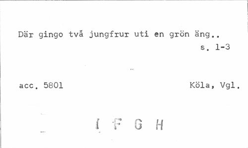 //// Där gingo två jungfrur uti en grön äng,. //// s. 1-3 //// acc, 5801 Köla, Vgl. //// f f 0 H ////