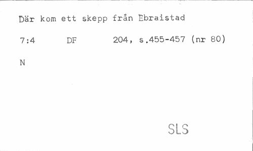 //// Där kom ett skepp från Ebraistad //// 7:4 DF 204, s.455-457 (nr 80) //// N //// SLS ////