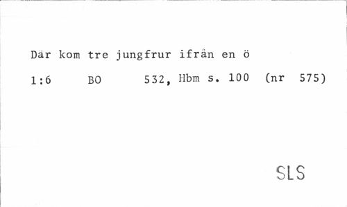 //// Där kom tre jungfrur ifrän en ö //// 1:6 BO 532, Hbm s. 100 (nr 575) //// SLS ////