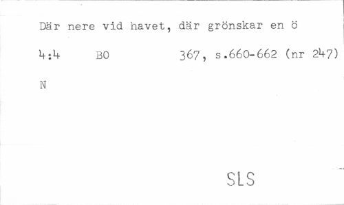 //// Där nere vid havet, där grönskar en ö //// BO 367, s.660-662 (nr 2k7) //// N //// SLS ////