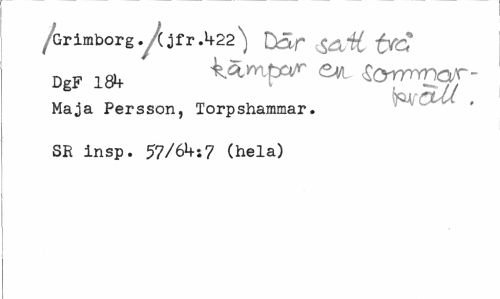 //// /Grimborg./Ufr.to^ EHf fO //// DgF ieh k&mtfMT ej/L icrrmmor- //// Ma ja Persson, Torpshammar. ' //// SR insp. 57/6^:7 (hela) ////