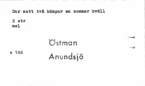 //// Där satt två kämpar en sommar kväll //// 2 str mel //// ¦ »Mil //// östman //// 3 186 A J //// Anundsjo ////