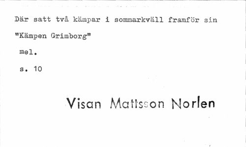 //// Där satt två kämpar i sommarkväll framför sin "Kämpen G-rimborg" mel. s. 10 //// Visan Mallsson Morfen ////