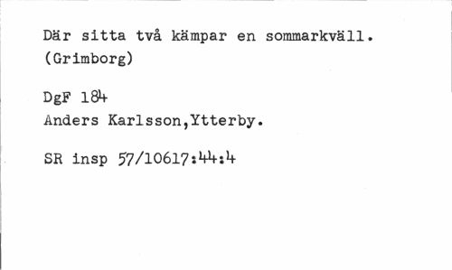 //// Där sitta två kämpar en sommarkväll. (Grimborg) //// DgF 1&+ //// Anders Karlsson,Ytterby. SR insp 57/10617iM+s1+ ////