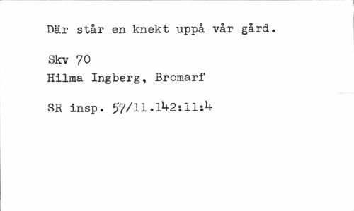 //// Där står en knekt uppå vår gård. Sk v 70 //// Hilma Ingberg, Bromarf SR insp. 57/ll.l*f2xll«lt ////