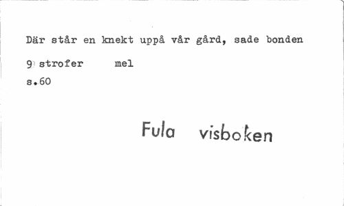 //// Där står en knekt uppå vår gård, sade bonden //// 9' strofer mel s. 60 //// Fula visboken ////