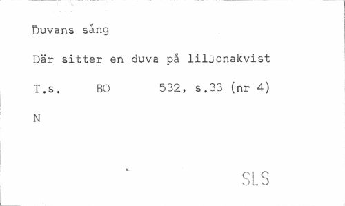 //// Duvans sång //// Där sitter en duva på liljonakvist T .s . BO 532, s.33 (nr 4) //// N //// SLS ////