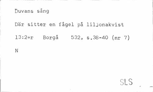 //// Duvans sång //// Där sitter en fågel på liljonakvist 13:2+r Borgå 532, s.38-40 (nr 7) N //// SLS ////