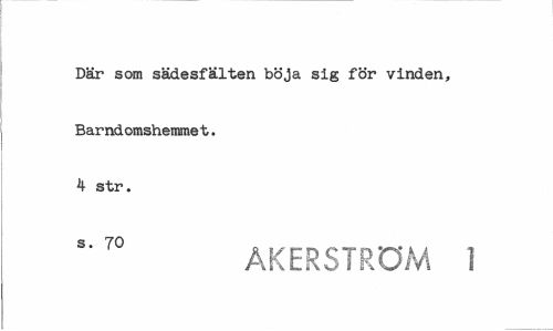 //// Där som sädesfälten böja sig för vinden, Barndomshemmet. 4 str. //// *'70 ÅKERSTRÖM ! ////