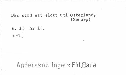 //// Där stod ett slott uti Österland, //// (Genarp) //// s. 13 nr 13. mel. //// Andersson Ingers Fld.Oara ////