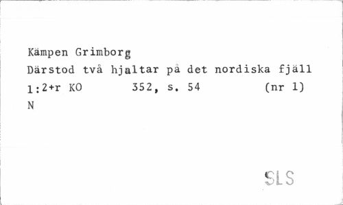 //// Kämpen Grimborg //// Därstod två hjältar på det nordiska fjäll 1:2+r KO 352, s. 54 (nr 1) //// N //// SLS ////