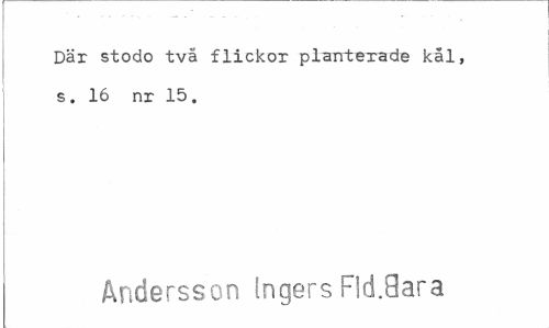 //// Där stodo tvä flickor planterade kål, s. 16 nr 15. //// Andersson Ingers Fld.Sara ////