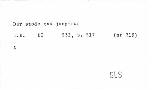 //// Där stodo tvä jungfrur //// T.s. BO 532, s. 517 (nr 319) //// N //// SLS ////
