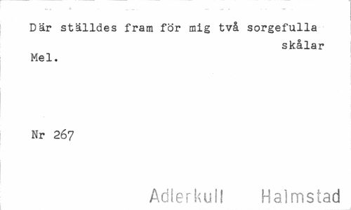 //// Där ställdes fram för mig två sorgefulla //// skålar //// Mel. Nr 267 //// Adlerkuil Halmstad ////