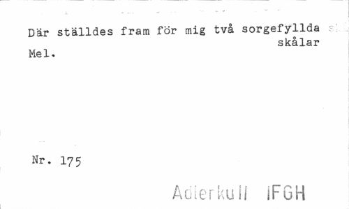 //// Där ställdes fram för mig tva sorgefyllda - //// skålar //// Mel. Nr. 175 //// Adterku if IFGH ////