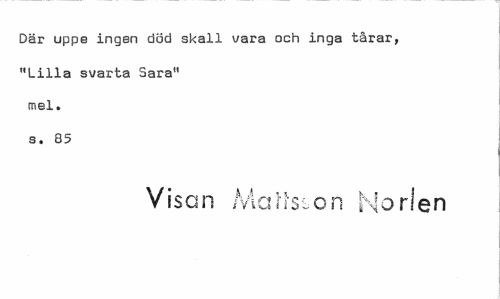 //// Där uppe ingen död skall vara och inga tårar, "Lilla svarta Sara" mel. s. 85 //// Visan Mans:cn Horlen ////