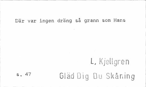 //// Där var ingen dräng så grann som Hans //// L, Kjellgren s- 47 Gläd Oig Du Skåning ////
