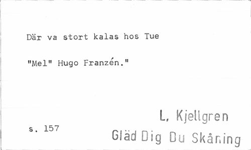 //// Där va stort kalas hos Tue "Mel" Hugo Franzén." //// L, Kjellgren //// s 157 //// Gläd Dig Du Skåning ////