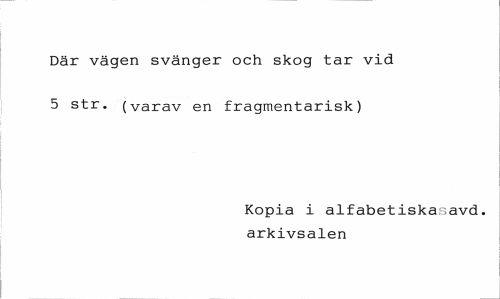 //// Där vägen svänger och skog tar vid 5 str. (varav en fragmentarisk) //// Kopia i alfabetiskasavd. arkivsalen ////