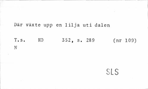 //// Där växte upp en lilja uti dalen //// T.s. KO 352, s. 289 (nr 109) //// N //// SLS ////