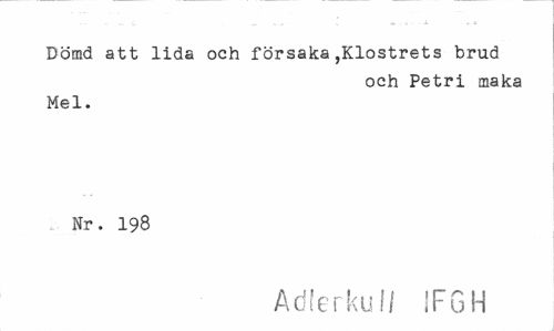 //// Dömd att lida och försaka,Klostrets brud //// och Petri maka //// Mel. //// Nr. 198 //// Adterku 1/ IFGH ////