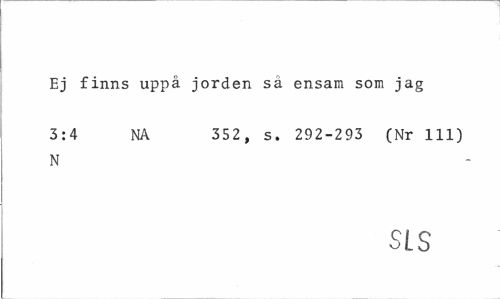 //// Ej finns uppå jorden så ensam som jag //// 3:4 NA 352, s. 292-293 (Nr 111) //// N //// SLS ////