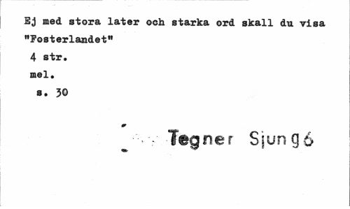 //// Ej med stora låter och starka ord skall du visa "Fosterlandet" 4 str. mel* s. 30 //// w //// - v Tegner Sjun g 6 ////