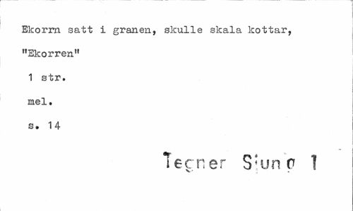 //// Ekorrn satt i granen, skulle skala kottar, "Ekorren" 1 str. mel. s. 14 //// Tecner Skinn 1 ////