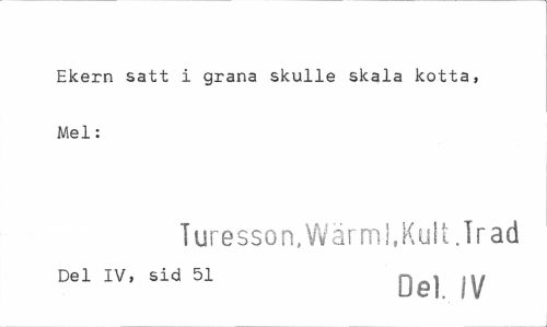 //// Ekern satt i grana skulle skala kotta, Mel: //// Turesson,Wärm!,Kult.Trad //// Del IV, sid 51 iy ////