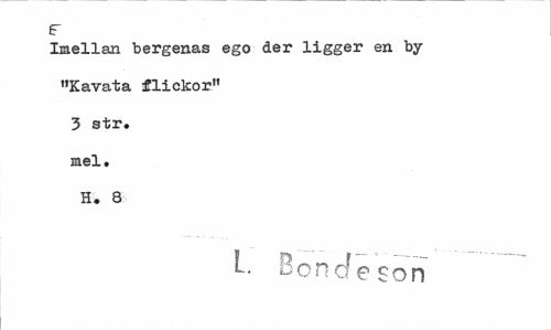 //// F //// Imellan bergenas ego der ligger en by "Kavata flickor" 3 str. mel. H. 8 //// L. Bonde son ////