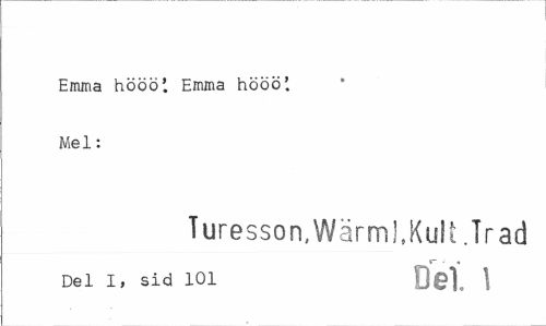 //// Emma hööö*. Emma hööö'. Mel: //// Turesson,Wärm],Kult.Trad //// - « //// Del I, sid 101 Q©!, 1 ////