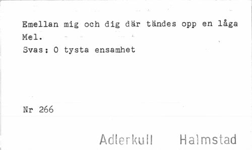 //// Emellan mig och dig där tändes opp en låga Mel. //// Svas: 0 tysta ensamhet Kr 266 //// Adlerkull Halmstad ////