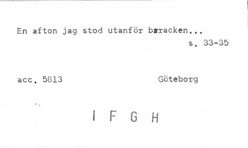 //// En afton jag stod utanför baracken... //// s. 33-35 //// acc. 5813 Göteborg //// ! F G H ////